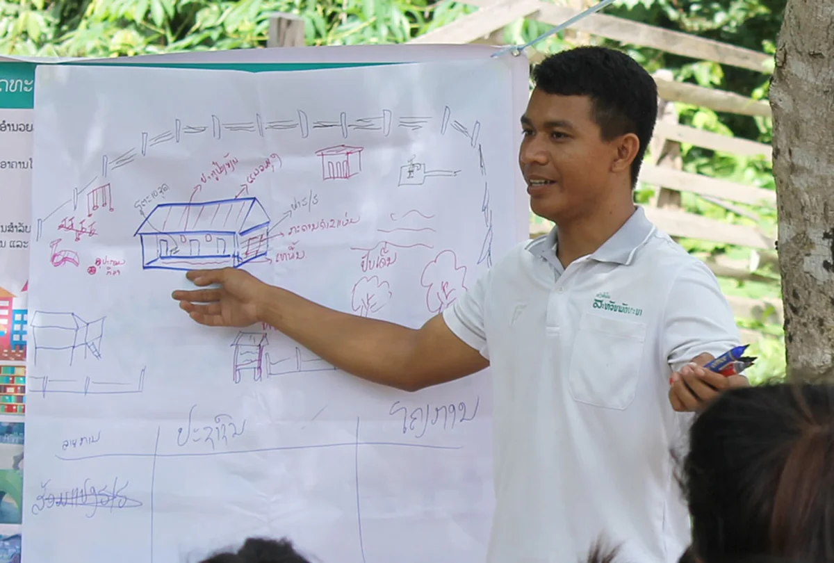 Wir haben soeben unser Büro im ländlichen Distrikt Atsaphone bezogen. Ich hatte bereits auf dem Land im Distrikt Xonnabuly einen Monat lang Englisch unterrichtet. Ich lebte bei den Einheimischen, ich ass, was sie assen. Ich kann mich leicht an das Leben auf dem Land anpassen. Für den Aufbau der Beziehung zur Gemeinde muss man sich Zeit nehmen. Das Ziel ist es, dass die Menschen uns vertrauen und ihren Geist öffnen und damit bereit sind, sich an unserem Vorhaben zu beteiligen. Das ist nicht leicht – aber gleichzeitig auch nicht schwer, denn ich arbeite nicht allein. Ich bin Teil eines Teams, das sich gegenseitig hilft und unterstützt.“ Phonexay Senephimmachack